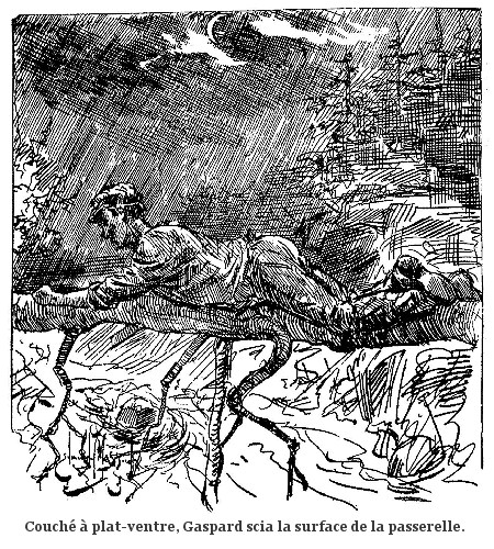 Et Gaspard, prenant les devants, s'engagea aussitôt sur la pente du monticule qui leur avait servi d'observation, dévalant comme un cerf qui aurait eu toute une meute sur les jarrets.