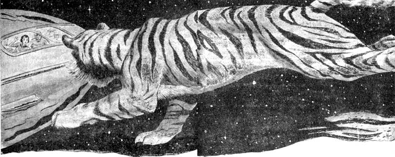The desperate Holloway, fearful of being stopped or running out of words, went into minute detail. "She made the statement as a pouting complaint, almost casually. Then, before I could speak, she realized what she'd said and her face changed. A kind of horrified double-take. 'A tiger? In the companionway of a space ship?' This last was an incredulous question she asked herself. Then she fainted. I looked outside. I thought I saw something blurred and indistinct but it vanished quickly if it was really there at all. The companionway was empty. No tiger. No animal of any kind—"