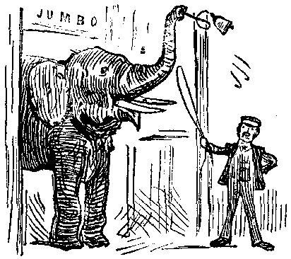 However, there is just one matter for which I have to thank him. I confess that my face werry possibly turned gashly pale as I read his orful letter, I fornatrally thort if he is going to recommend less Cooks he may werry posserbly be a going for to recommend less Waiters! But no, he had the good taste to draw his line there, and for that I thanks him. What a treat it is to turn from the wild projecks of the Lecterer to the wise counsels of the Alderman. No doubt, he says, we could all do without luxuries, but what would become of the millions who produces them? No doubt, he says, we could all live on plain food and drink water—what orful words for a Alderman to write down!—but then what would become of the millions who earns their living in preparing them, and he might have added, as a clencher to his staggering argument, and what would become of Hus? If there is one picter that presents itself to my orrified imagination, that more than any other staggers it, it is that of the hole splendid Army of London Waiters, with their full dress black coats a gitting jist a leetle shabby, and their lovely white chokers jest a leetle shady, a parading the London Streets, and a singing in Chorus, "We've got no work to do!" But no, I feels as that orful dream will never live to be realised, but, to use the classic langwidge as the Lecturer quotes from some frend of his, and which I supposes as he intends as a complement, "let the idol rich still take their proper place as drones in the hive, gorging at a feast to which they have contributed nothing," and he might have added, and never never forgetting the Waiter.