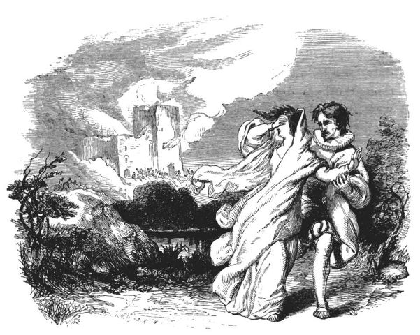 Artegall, or, in other words, Lord Grey, passes over to Ireland, and encounters Pollentč, or Gerald, earl of Desmond, "who was in rebellion against Elizabeth at the time of Lord Grey's appointment to the chief authority in Ireland, and perished miserably in consequence. His prodigious wealth and power would amply bear out such an appellation. His lands extended one hundred and fifty miles in the south of the kingdom, stretching from sea to sea, and comprising the greater portion of the counties of Waterford, Cork, Kerry, and Limerick. We read of his being able to bring together, by his summons, six hundred cavalry and two thousand footmen; and of these, nearly five hundred were gentlemen of his own kindred and surname. His castles were numerous, and scattered over this large tract of country in well-chosen places, for its defense and protection; and it is curious that attached to one of them is a tale of blood not unlike what you will find Spenser describing. A few miles above the sea, on a bold cliff overhanging one of the deepest parts of the beautiful River Blackwater, stand the battered remains of the earl's Castle of Strancally. Attached to this strong-hold is a murderous device, which we had often previously heard of, but never till then beheld. The solid rock had been pierced with a large well-like aperture, communicating with the river; and the neighboring peasants will tell you, that the unwary, when decoyed within the castle, were tied hand and foot, and flung down the murder-hole: the rapid river hurried by, and soon carried away their gasping shrieks, and[Pg 23] the dead told no tales. We have every respect for these local traditions, and esteem them in a thousand instances valuable guides; notwithstanding, we place no faith in the present horrible legend, which is wholly at variance with the received character of the Earl of Desmond. It may be that such things were told to him, even in Spenser's days; and it is certain that, about the close of the year 1579, his Castle of Strancally was taken by the Earl of Ormond, the president of Munster; a capture which could be easily transferred to the poet's hero, Artegall."