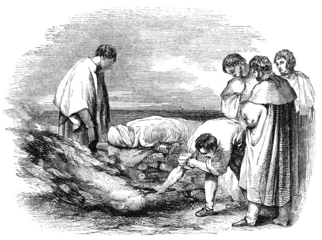 The general opinion is, that he died October 25th, in the year 1400, being seventy-two years of age. According to Wood, he never repented of his reflections on the clergy of his times, but upbraided himself bitterly with the licentious portions of his writings, often crying out at the approach of death, "Woe, woe is me, that I can not recall and annul those things; but, alas! they are now continued from man to man, and I can not do what I would desire." He was buried in Westminster Abbey, in the great south aisle, but no monument was raised to his memory till a century and a half after his decease, when Nicholas Bingham, a gentleman of Oxford, a poet and great admirer of Chaucer, erected the plain altar, now so well known, having three quatrefoils, and the same number of shields, at the north end of a magnificent recess, formed by four obtuse arched angles. The inscription and figures are now almost obliterated.