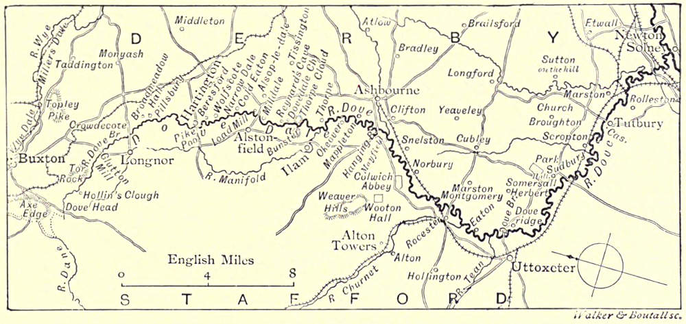 | CHAPTER II.—The Dove.—What’s in the Name—Axe Edge and Dove Head—The Monogram—Glutton Mill—Hartington—Beresford Dale—Pike Pool—Izaak Walton and Charles Cotton—Beresford Hall—Dove Dale—Its Associations—Ilam—The Manifold—Ashbourne—Doveridge—Uttoxeter—Sudbury—Tutbury—The Confluence | 240 |