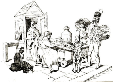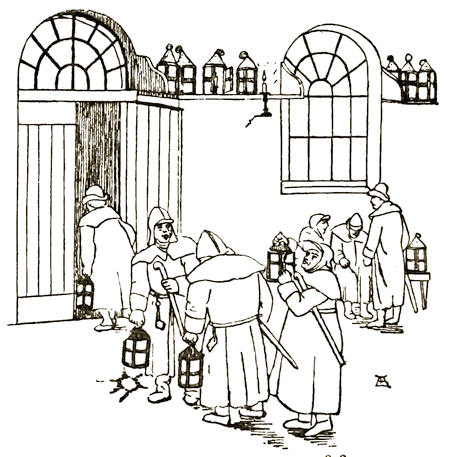 For, never, in the world’s history, has there been such a change in things social, as since the commencement of the Nineteenth Century; it has been a quiet revolution—a good exemplar of which may be found in the Frontispiece, which is a type of things past, never to be recalled. The Watchman has long since given place to the Police; the climbing boy, to chimney-sweeping on a more scientific plan; and no more is “Saloop” vended at street corners; even the drummer-boys are things of the past, only fit for a Museum—and it is of these things that this book treats.