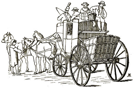 | The roads—Modern traffic compared with old—The stage coach—Stage waggons—Their speed—Price of posting—The hackney coach—Sedan chairs—Horse riding—Improvement in carriages | 182 |
