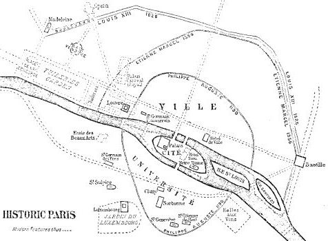 PARIS is not, like Rome, London, Lyons, an inevitable city. It does not owe its distinctive place, like New York, Chicago, San Francisco, Melbourne, to natural position alone. Rather does it resemble Madrid or Berlin in being in great part of artificial administrative origin. It stands, no doubt, upon an important navigable river, the Seine; but its position upon that river, though near the head of navigation, when judged by the standard of early times, is not exactly necessary or commanding. Rouen in mediæval days, Havre at the present moment, are the real ports of the Seine. The site of Paris is in itself nothing more than one among the many little groups of willow-clad alluvial islets which are frequent along the upper reaches of the river. The modern city owes its special development as a town, first to its Roman conquerors, then to its bridges, next to its mediæval counts, last of all to the series of special accidents by which those counts developed at last into kings of the nascent kingdom of France, and inheritors of the traditions of the Frankish sovereigns. It is thus in large part a royal residential town, depending mainly for prosperity upon its kings, its nobles, its courts of justice, its parliaments, its university, its clergy, and its official classes; comparatively little, till quite recent times, upon the energy and industry of its individual citizens. We say, as a rule, that Paris is the capital of France; it would be truer to say that France is the country which has grouped itself under the rulers of Paris.