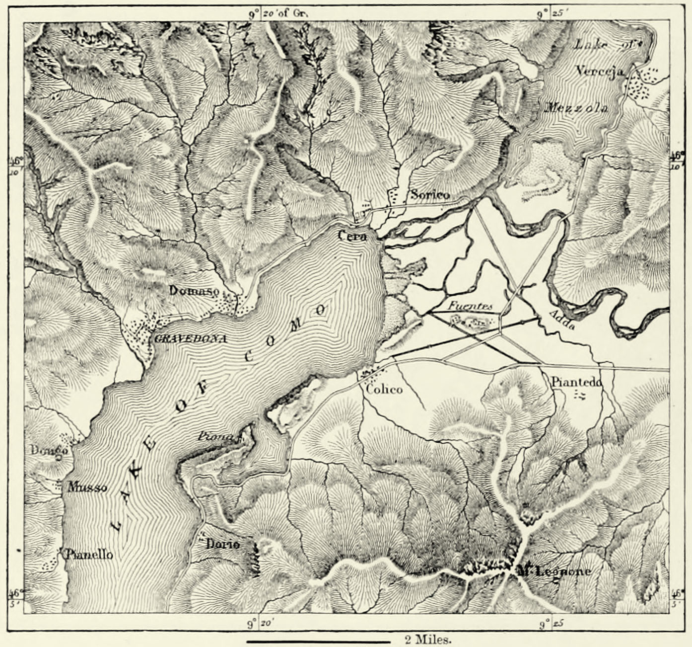 The wide range of the Alps and of their advanced chains thus separated two distinct worlds, in which historical development went on at a different rate. At the same time, the separation between the two slopes of the Alpine system was by no means complete. Nowhere in the Alps do we meet with cold and uninhabited plateaux, as in the Andes and in Tibet, whose enormous extent forms almost insurmountable barriers. The Alpine masses are cut up everywhere into mountains and valleys, and the climate of the latter is sufficiently mild to enable man to exist in them. The mountaineers, who easily maintained their independence, owing to the protection extended to them by nature, first served as intermediaries between the peoples inhabiting the opposite lowlands. It was they who effected the rare exchanges of produce which took place between the North and South, and who opened the first commercial high-roads between the summits of the mountains. The direction of the valleys and the deeply cut mountain passes even then indicated the grand routes by which the Alps would be crossed, at a future period, for the purposes of commerce or of war. That portion of the Alps which lies between the mountain masses of Savoy and of the Mediterranean would naturally cease first to form an obstacle to military expeditions. The Alps there are of great height, it is true, but they are narrower than anywhere else; besides which, the climate on the two opposite slopes is similar, and assimilates the mode of life and the customs of the people dwelling there. Far more formidable, as a natural barrier, are the Alps to the north-east of Mont Blanc, for they constitute a climatic boundary.
