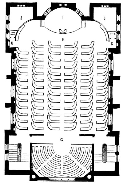 There are few architects who are not subject to the often occurring claims on their donative services in behalf of poor congregations, and, [Pg 74] we say it with pride, that we have yet to hear of the first instance of those claims not being promptly attended to by even the busiest of our brethren. Although it too frequently happens that their liberality is severely and most thoughtlessly taxed; for there generally is in every community some spirit too restless to cease troubling even those whose time is very limited. In a serial like the Architectural Review there is an opportunity presented to give, from time to time, sketches and instructions, by which the wants of the bodies we allude to may be met. The pastor in the backwoods, and the minister on the prairie, as well as the servant of God who teaches the poor in our crowded cities, and skill are freely given, not to them personally, but to the sacred cause they are supposed to have an interest in. But let that pass.