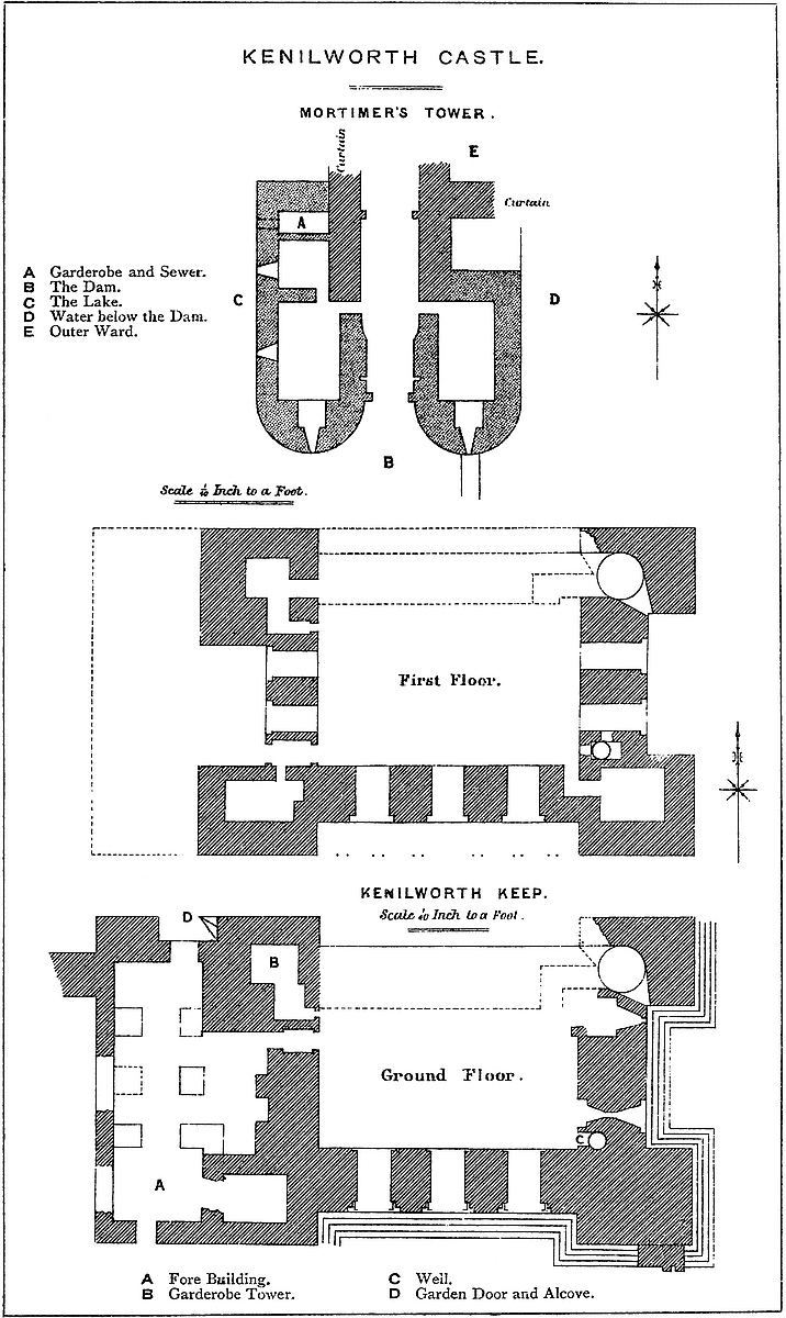 Roger, his son, sixth lord, took a lead in Welsh affairs, but with no great success. Llewelyn took four of his castles, Melenydd, Keventles, Radnor, and another. He adhered to Henry, fought at Northampton, and had to flee from Lewes. He aided in the flight of Prince Edward from Hereford, brought him to Wigmore, had a529 command at Evesham, and for his services received the forfeited estates of the earldom of Oxford, opposing on that account the wise restoration proposed by the Dictum de Kenilworth. It was he who at that celebrated castle held the famous tournament, in honour of which the great gatehouse, it is thought, gained its name of Mortimer Tower. It has been supposed that he rebuilt the castle of Wigmore, but most of the work now seen seems of a rather later date. He died in 1282–3, and, said his epitaph at Wigmore—