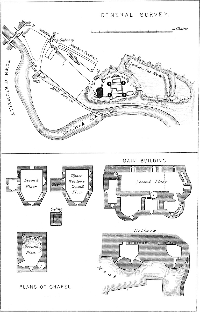 A little before 7 Henry III., Prince Llewelyn laid siege to the castle, and it sustained a severe attack from the Welsh on the Friday preceding Midsummer, 6 Henry IV. It appeared, from an inquiry dated 1 Henry V., that Richard II. had granted the castle, pending the minority of Fulk Fitz-Warine, to Yvion Fitz-Warine, who sold the wardship to Elizabeth, Lady Botreaux, a daughter of Sir Ralph d’Aubigny, and she held it when attacked. Probably she expected the attack to be repeated, for, on the Sunday after Midsummer, Thomas, Earl of Arundel, with soldiers from Oswaldestre, took charge. Elizabeth resigned her wardship to William de Clinton and Anne, his wife, and her daughter.