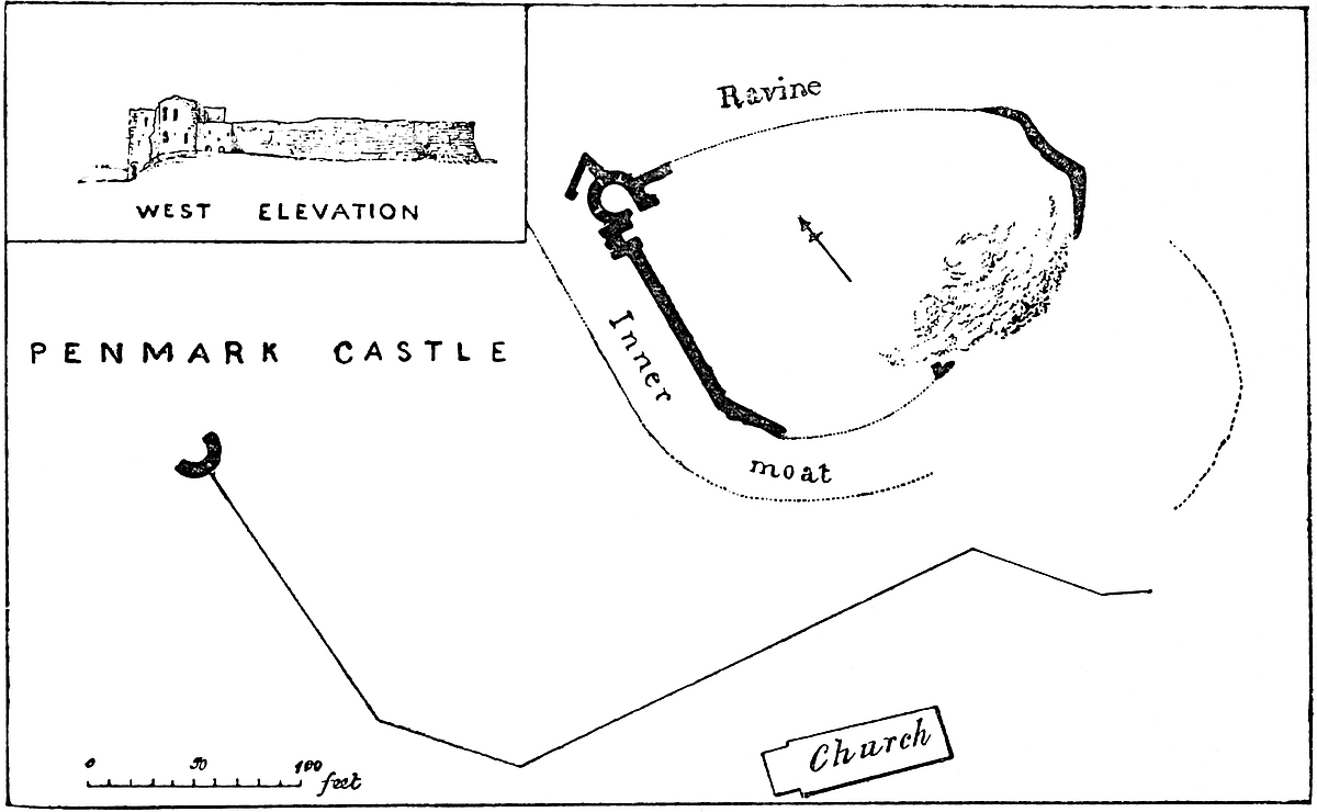 Mohun no doubt found the tor strongly fortified, after the English manner, for not only was it a frontier fortress against the western Celts, but it must have been exposed to the piratical invasion of the Northmen, who gave name to the opposite islands of the Holms, and the not very distant port of Swansea. The place was, in fact, a natural burh on a large scale, such as Æthelflæd and Eadward the Elder were wont to throw up artificially on a smaller scale in the early part of the tenth century. There was the conical hill with its flat top for the aula or domus defensabilis, and the courtyard below for the huts and sheds of the dependents and cattle.
