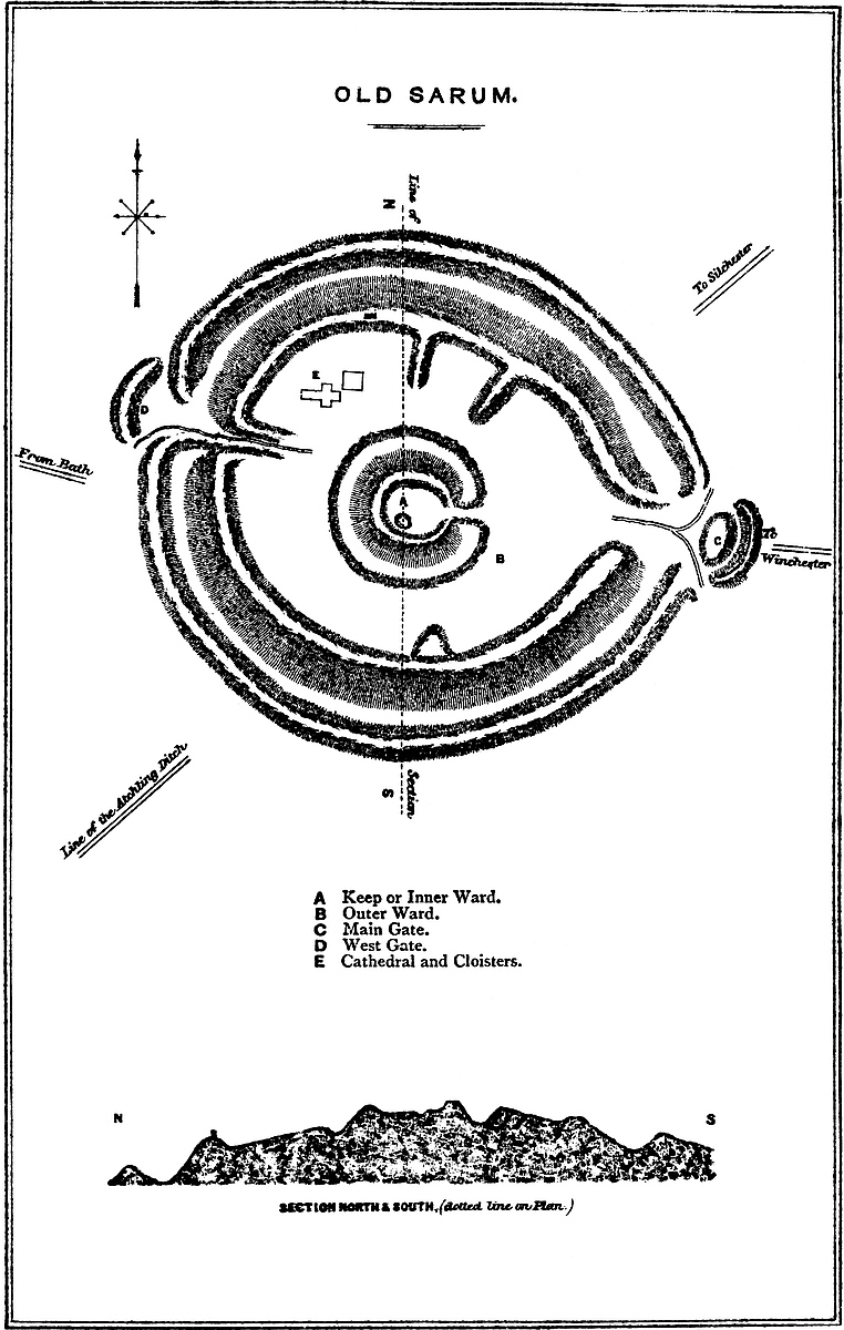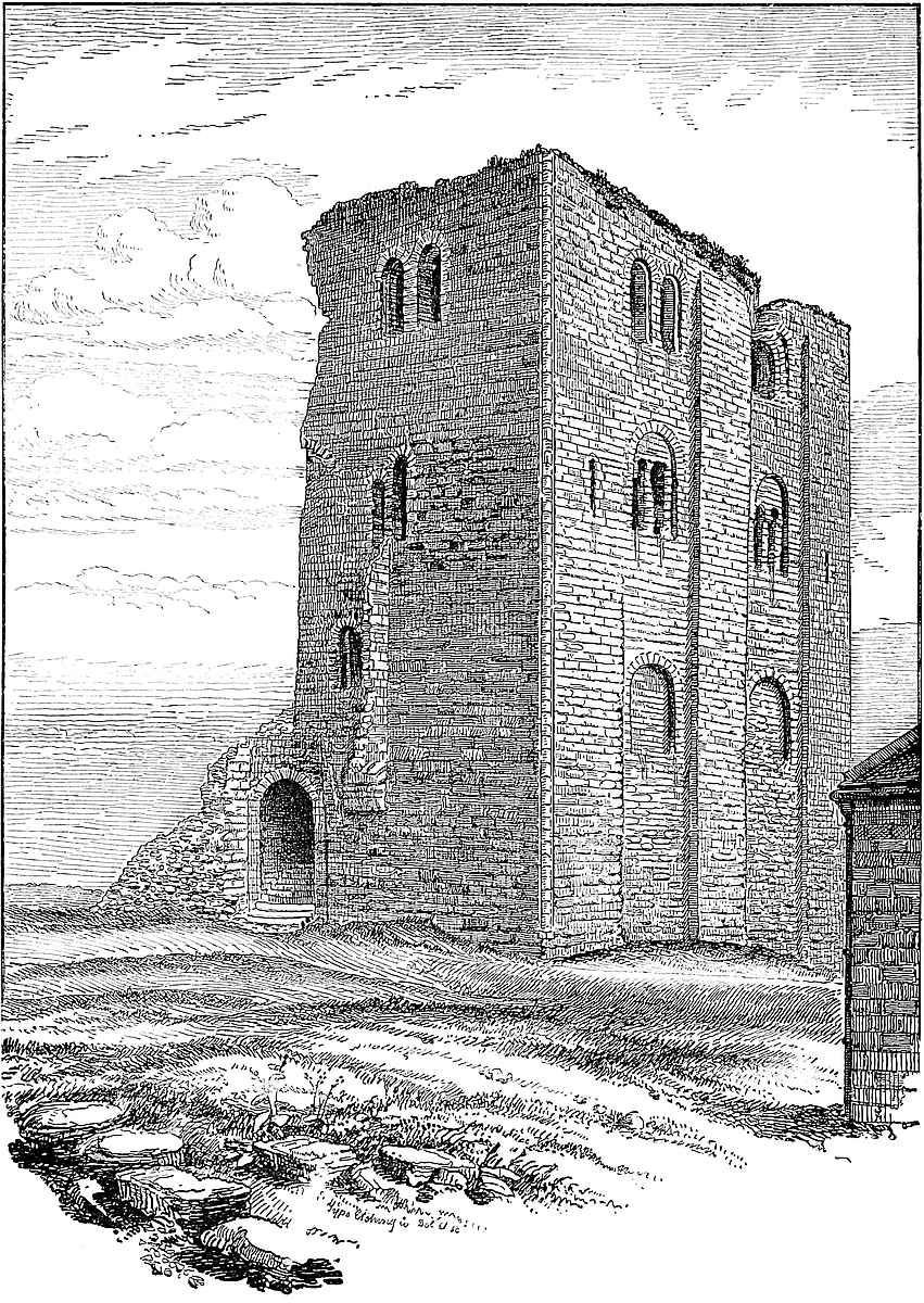 To the Roman period is to be referred the burial-ground laid open near the edge of the cliff in 1797, and the bath discovered on the brook west of St. Mary’s Church. No mention is made of a Roman fortress, nor was it in accordance with the practice of that people to place a permanent camp, still less a military station, upon a height so inaccessible as the Castle Hill. The existing earthworks show no traces of Roman outline, nor, when they had possession of the whole district, was there any need to fortify the lighthouse. The lighthouse alone, of the works upon the hill, can with certainty be pronounced to be Roman, but this, of course, implies the existence and employment of the port. All that the topographer can affirm is that the earthworks do not now present, and, so far as description may be relied on, do not appear ever to have presented, anything of a Roman character.