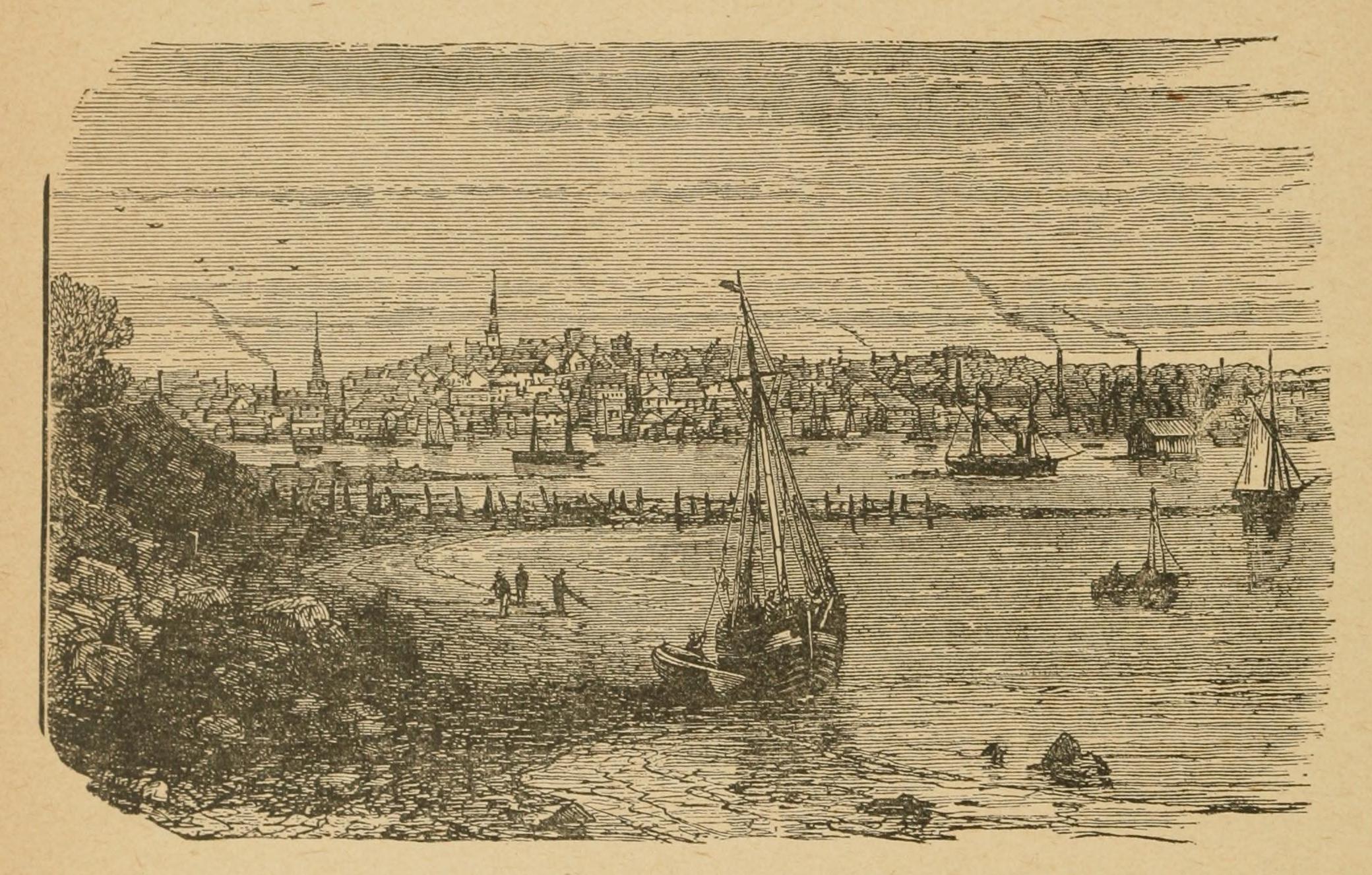 Thorvald is supposed on this trip to have coasted along the shores of Connecticut, Rhode Island, and Long Island, and in the ensuing year, 1004, to have sailed as far north as Cape Cod (N. lat. 42° 5′, W. long. 70° 10′), where he was wrecked in a violent storm. His vessel was not, however, materially damaged, and having repaired it, he coasted along the present Massachusetts till he came to what is now the harbor of Boston. There he landed, and wandering to and fro in the beautiful scenery with his men, he for the first time came upon some natives, probably Esquimaux, who were resting peaceably beneath their quaint skin-boats.
